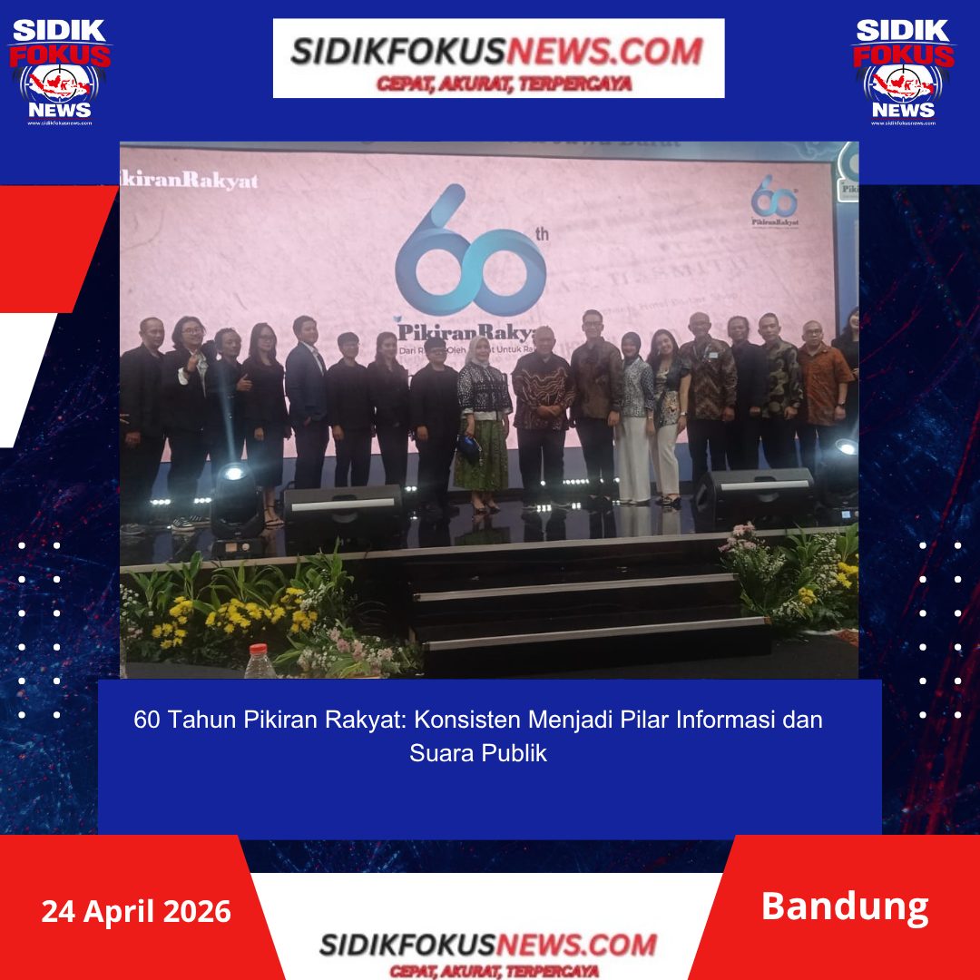 SIDIKFOKUSNEWS.COM Bandung, 24 April 2026 — Harian Pikiran Rakyat merayakan hari jadinya yang ke-60 dalam sebuah rangkaian acara penuh makna yang digelar di Hotel Savoy Homann. Momentum ini menjadi tonggak penting perjalanan media yang telah enam dekade berkontribusi dalam menyajikan informasi terpercaya sekaligus menjadi bagian dari pembangunan di Jawa Barat dan Indonesia.