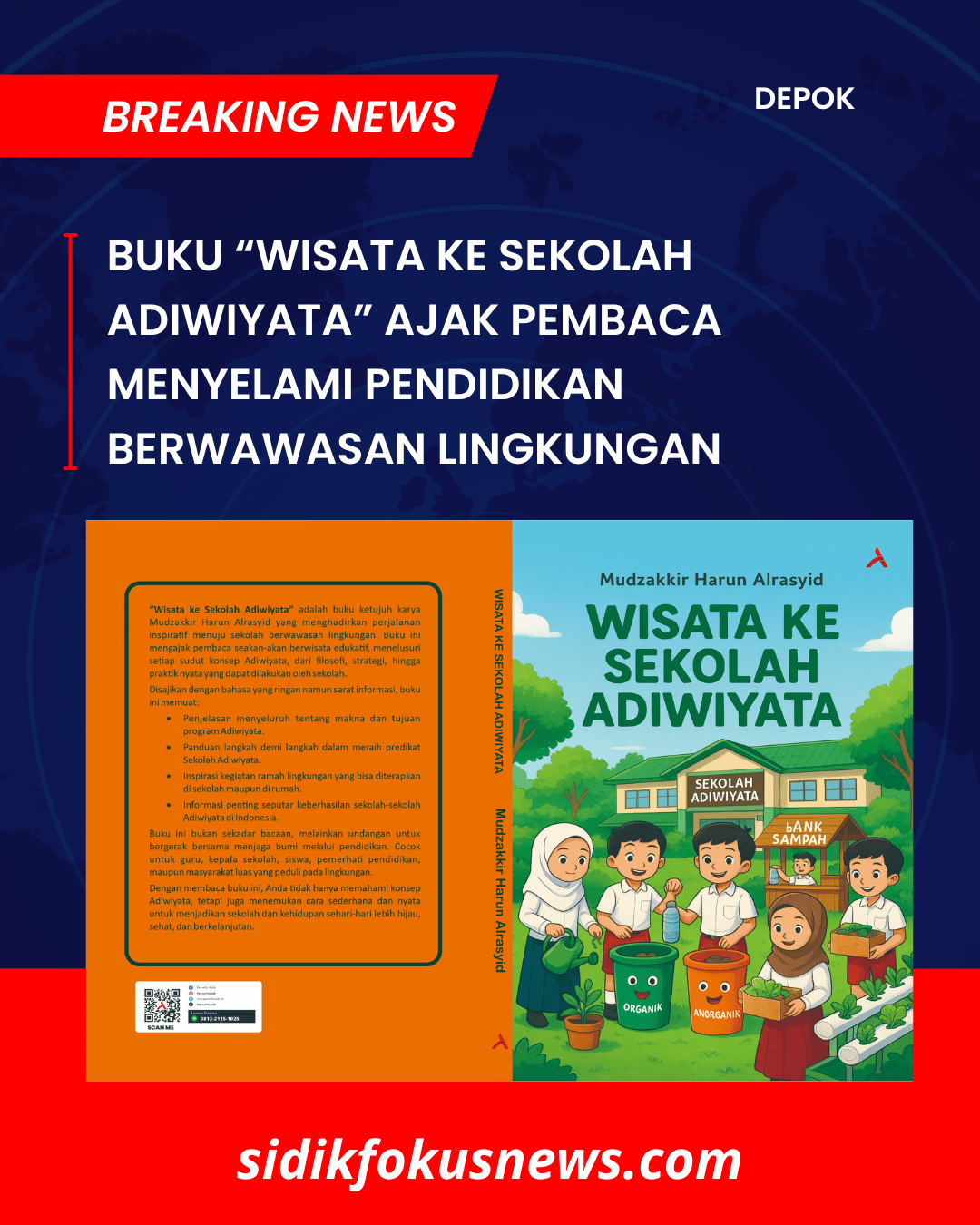 SIDIKFOKUSNEWS|DEPOK 9 Januari 2026 — Kepedulian terhadap lingkungan hidup semakin menemukan relevansinya dalam dunia pendidikan. Hal inilah yang diangkat oleh Mudzakkir Harun Alrasyid, guru SDIT Miftahul Ulum Cinere, Depok, melalui buku terbarunya yang berjudul Wisata ke Sekolah Adiwiyata. Buku ketujuh karya Mudzakkir ini hadir sebagai bacaan inspiratif yang mengajak pembaca menyelami praktik pendidikan yang berpadu erat dengan kepedulian terhadap alam.
