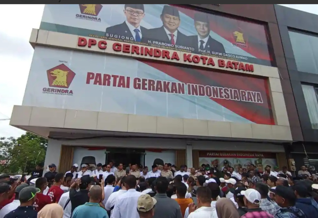 Di bawah panji burung garuda yang berkibar, Ketua DPD Gerindra Provinsi Kepulauan Riau, Iman Sutiawan, berdiri sejajar dengan Ketua DPC Gerindra Kota Batam, Nanyang Haris Pratamura. Keduanya berada di barisan terdepan bersama jajaran pengurus, mengangkat tangan dengan gestur simbolik yang dimaknai sebagai perlawanan terhadap apa yang mereka sebut sebagai upaya penggembosan dan pelecehan terhadap marwah partai.