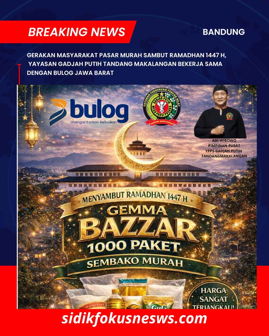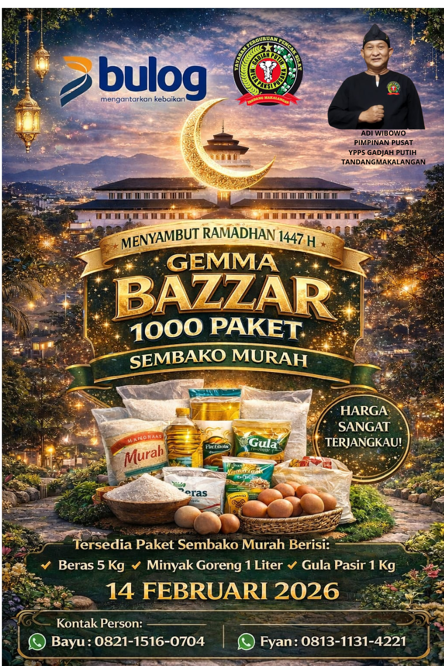 SIDIKFOOKUSNEWS|Bandung, 04 Pebruari 2026 — Dalam rangka menyambut datangnya Bulan Suci Ramadhan 1447 Hijriah, bulan penuh berkah, rahmat, dan ampunan, Yayasan Gadjah Putih Tandang Makalangan akan menyelenggarakan Gerakan Masyarakat Pasar Murah yang akan dilaksanakan pada Jumat, 14 Februari 2026, bertempat di Alun-alun Ujungberung, Kota Bandung.