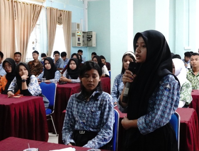 Kegiatan kemudian dilanjutkan dengan sesi tanya jawab interaktif antara narasumber dan siswa yang berlangsung dinamis. Beragam pertanyaan diajukan seputar bahaya Napza, fenomena bullying di sekolah, serta kasus-kasus pelanggaran hukum di dunia maya.