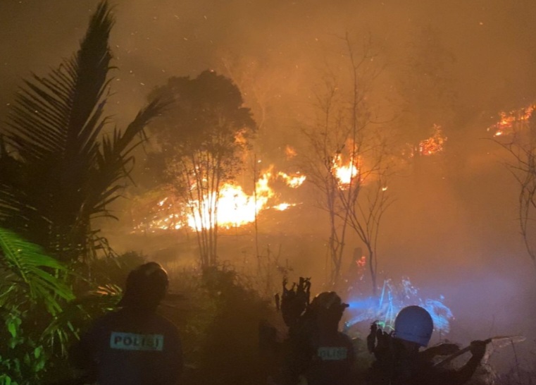 Menindaklanjuti laporan masyarakat terkait kebakaran hutan di wilayah tersebut, Tim SAR Satbrimob Polda Kepri bersama personel Dit Samapta Polda Kepri segera bergerak menuju lokasi dengan menerjunkan sebanyak 38 personel yang dipimpin oleh Dpp IPDA Biliko.