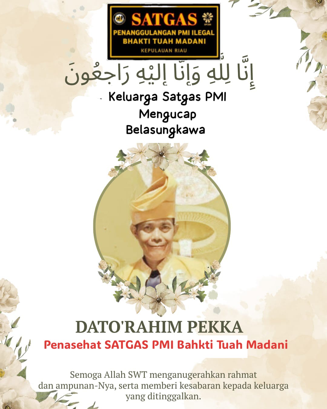 sidikfokus.news_Keluarga Besar Satgas PMI Bahkti Tuah Madani menyampaikan belasungkawa yang sedalam-dalamnya atas wafatnya Dato Rahim Pekka, selaku Penasehat Satgas PMI ,Selasa (18/11/25).