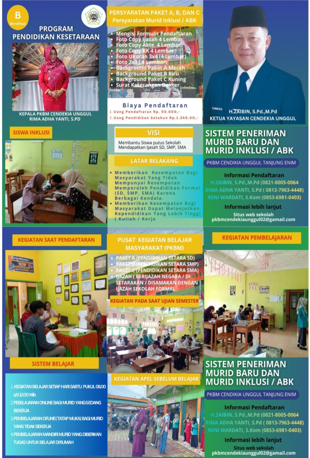 “Dengan dibukanya pendaftaran penerimaan murid baru, kami mengundang siswa-siswa berprestasi untuk bergabung dengan kami dan menjadi bagian dari keluarga besar PKBM Cendikia Unggulan Tanjung Enim,” ujar H. Zaibin S.Pd., M.Pd., Kepala PKBM Cendikia Unggulan Tanjung Enim.