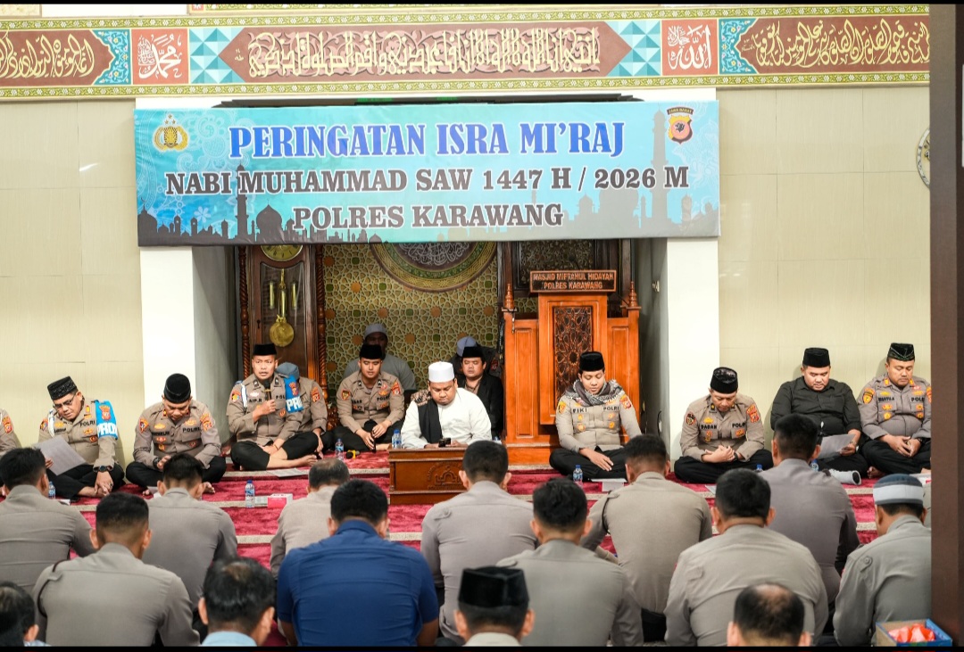 Acara ini dihadiri langsung oleh Kapolres Karawang AKBP Fiki N. Ardiansyah, para pejabat utama, perwira, bintara, aparatur sipil negara, serta Bhayangkari Polres Karawang. Peringatan Isra Mi’raj menjadi momentum spiritual yang dipadukan dengan pembinaan keagamaan rutin di lingkungan Polres Karawang.