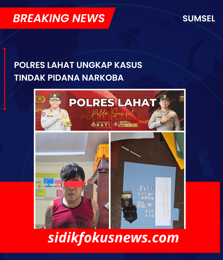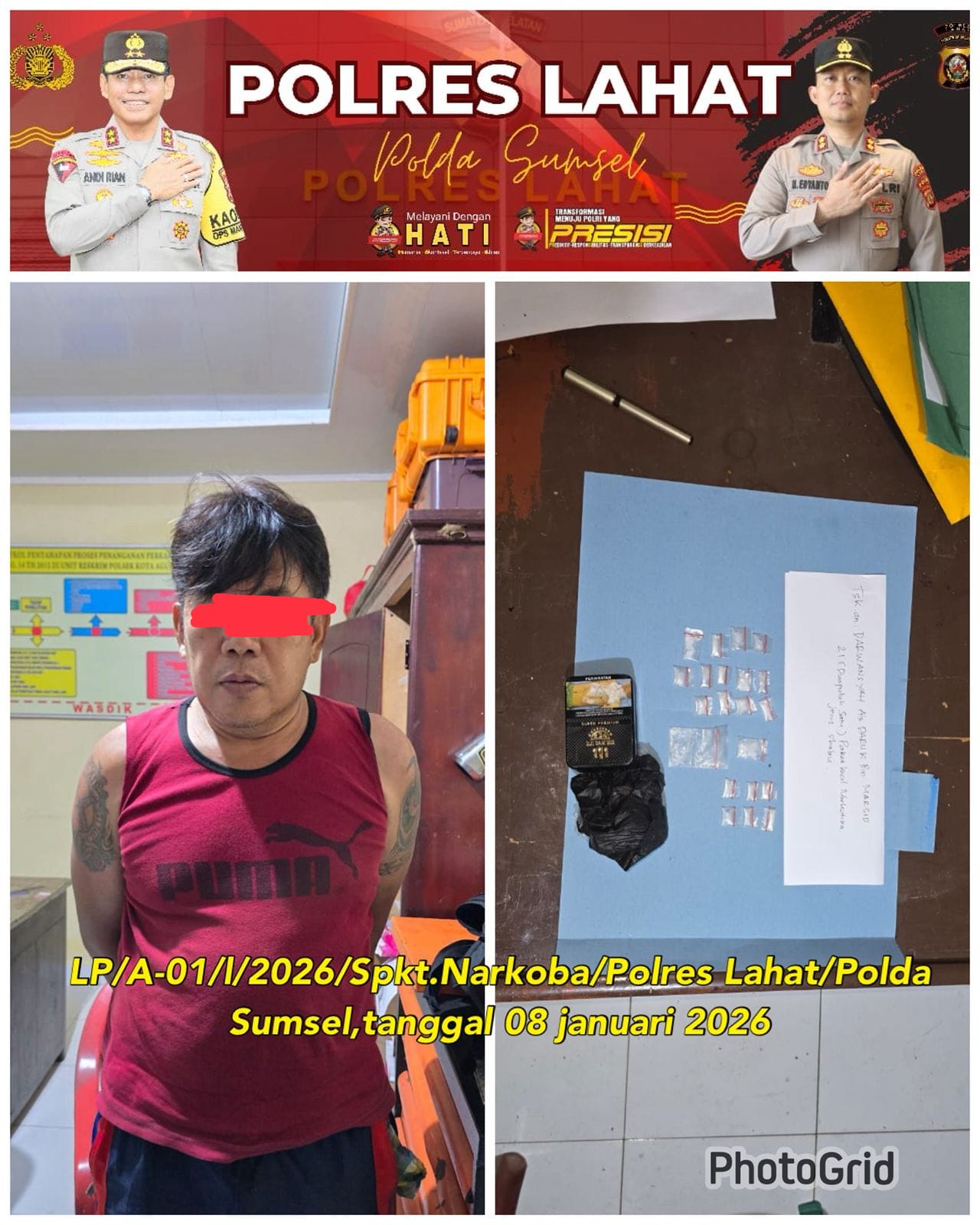 Polres Lahat, Polda Sumsel, telah berhasil mengungkap kasus Tindak Pidana Narkoba jenis sabu. Tersangka DWS Als D ditangkap di rumahnya di Desa Tanjung Raya, Kec. Tanjung Tebat, Kab. Lahat, pada Kamis, 07 Januari 2026, sekitar pukul 17.00 WIB.