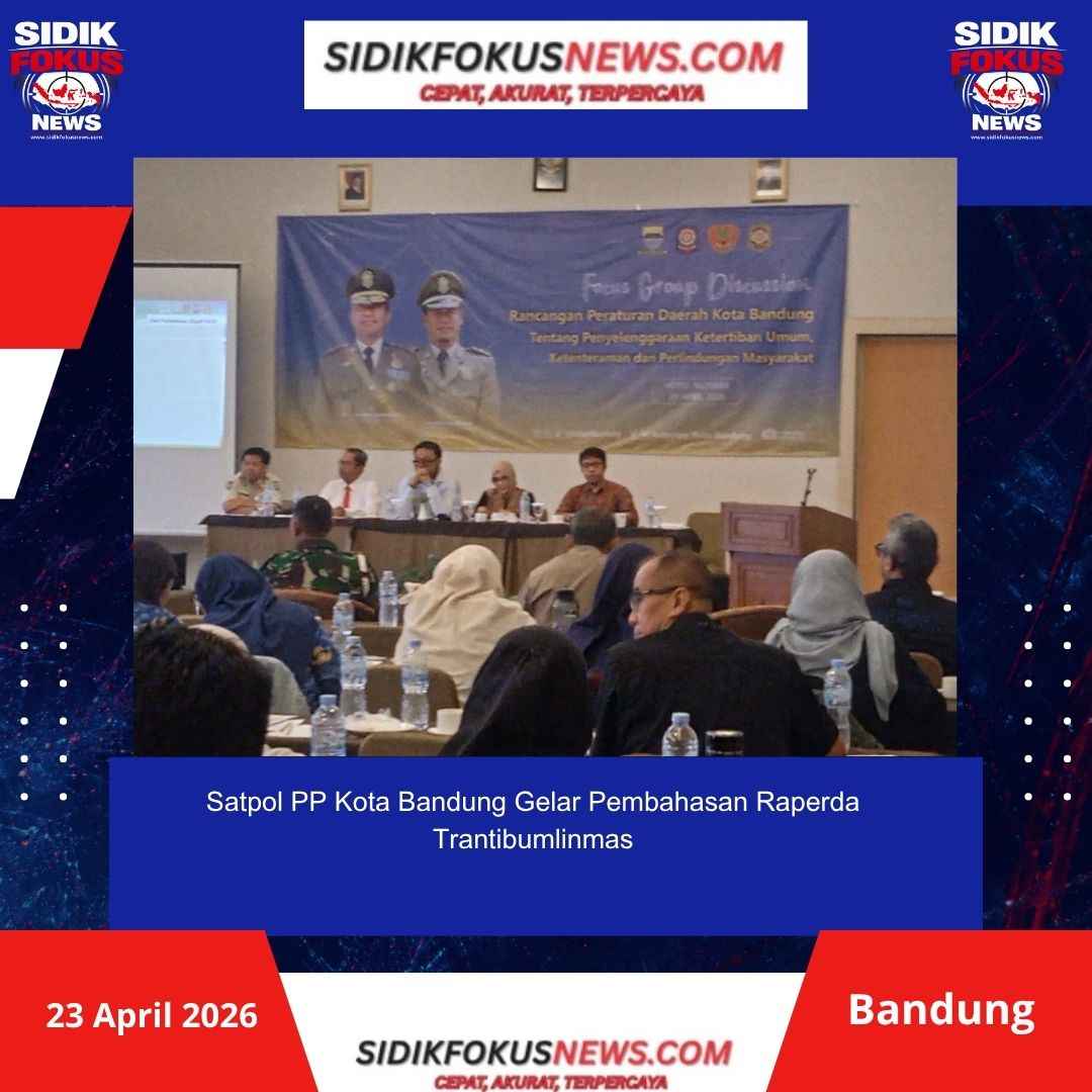 SIDIKFOKUSNEWS.COM ,Bandung, 23 April 2026 — Satuan Polisi Pamong Praja (Satpol PP) Kota Bandung menggelar kegiatan pembahasan Rancangan Peraturan Daerah (Raperda) Kota Bandung tentang Penyelenggaraan Ketertiban Umum, Ketentraman, dan Perlindungan Masyarakat (Trantibumlinmas) yang berlangsung di Hotel Mutiara, Kamis (23/04/2026).