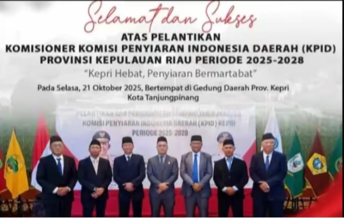 Tujuh komisioner Komisi Penyiaran Indonesia Daerah (KPID) Provinsi Kepulauan Riau (Kepri) periode 2025–2028 resmi dilantik oleh Wakil Gubernur Kepri, Nyanyang Haris Pratamura, di Gedung Daerah Provinsi Kepri, Kota Tanjungpinang, Selasa (21/10/2025).