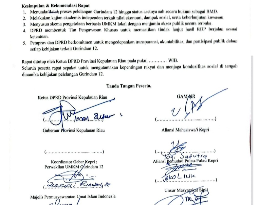 Pengamat tata kelola daerah, menilai polemik Gurindam 12 mencerminkan lemahnya komitmen pemerintah daerah dalam mengelola aset publik secara transparan. Menurutnya, DPRD dan Gubernur seharusnya berdiri di garis depan memperjuangkan kepentingan masyarakat, bukan membiarkan tarik-menarik kepentingan politik dan ekonomi mengaburkan keputusan.
